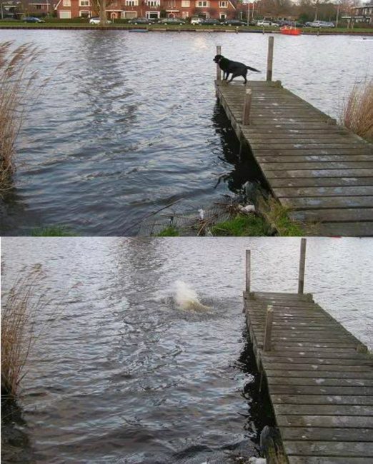 LABRADOR ASTOR+ ging altijd voor twee ballen tegelijk, één was niet genoeg, daar ging hij ook echt niet voor het water in.