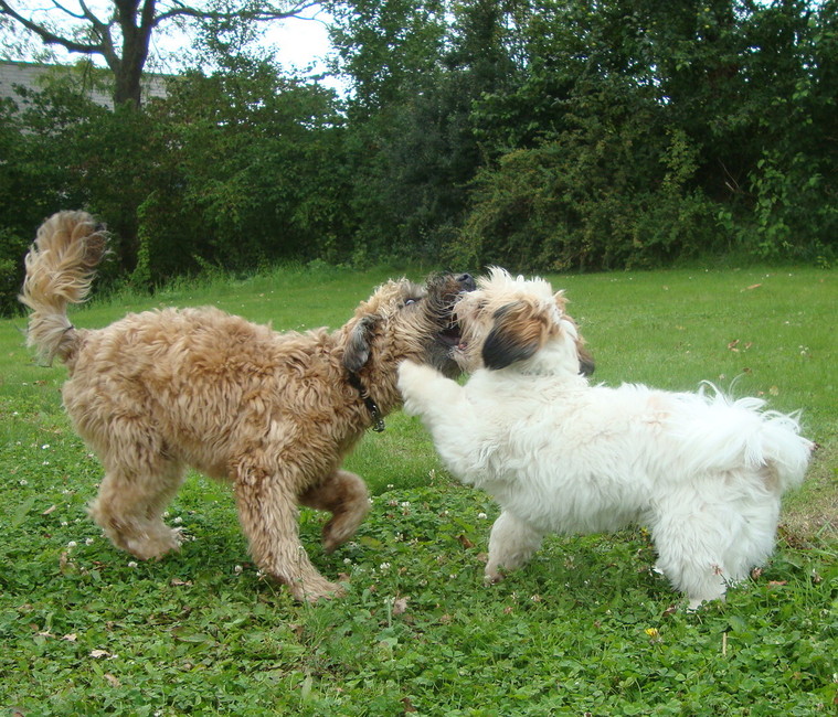 Maar als hij Pucky ziet (kruising maar vraag me niet van wat, denk heel veel rassen) gaat zijn staartje direct kwispelen. Die 2 spelen dan wel fijn samen