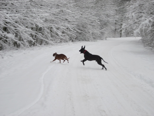 Op zondagochtend gaat mijn man altijd met een bekende lopen en zijn boxer teef Lara is Sjon vriendinnetje al meer dan een jaar.