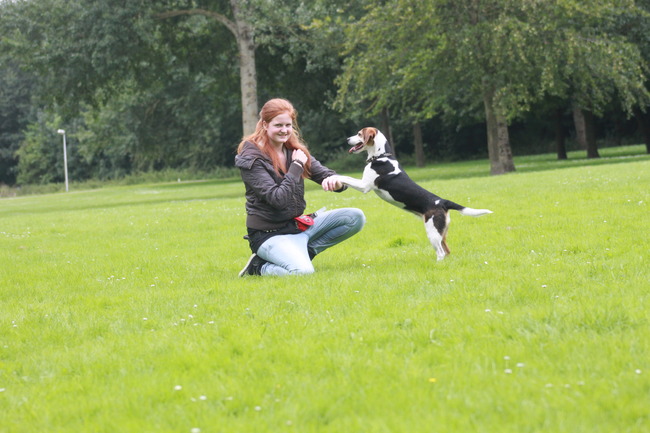 En heel even haar nieuwe truckje oefenen, waarbij het de bedoeling is dat ze uiteindelijk op mijn arm mee loopt naar voor achter en opzij (foto niet vandaag gemaakt maar toch even laten zien