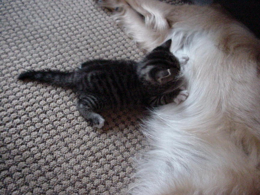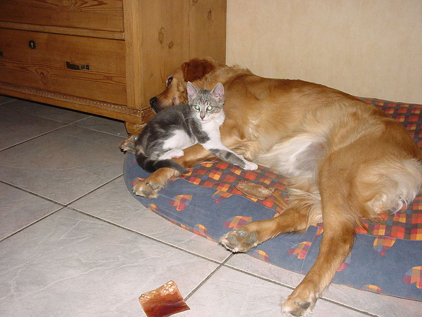 Yordi(overleden) was ook zo lief met onze katten (hij was 4j !toen we ons eerste kitten in huis haalden)