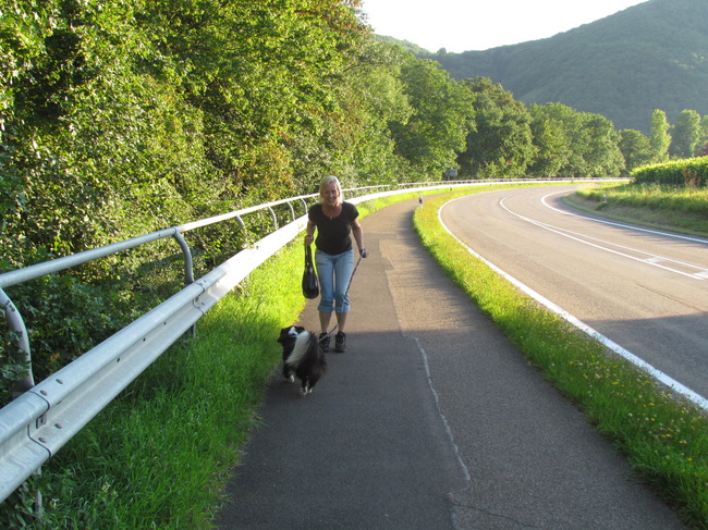 Omdat het daar in de bergen, wijnbergen en aan de straat nogal stijl en gevaarlijk was heb ik het vrouwtje maar aan de riem gelaten.