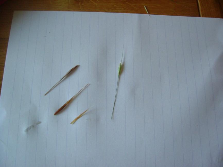 Ik bedoel de onderste,Dit zat in haar braaksel een paar weken geleden. Het gras was droog en dan komen de aren los.