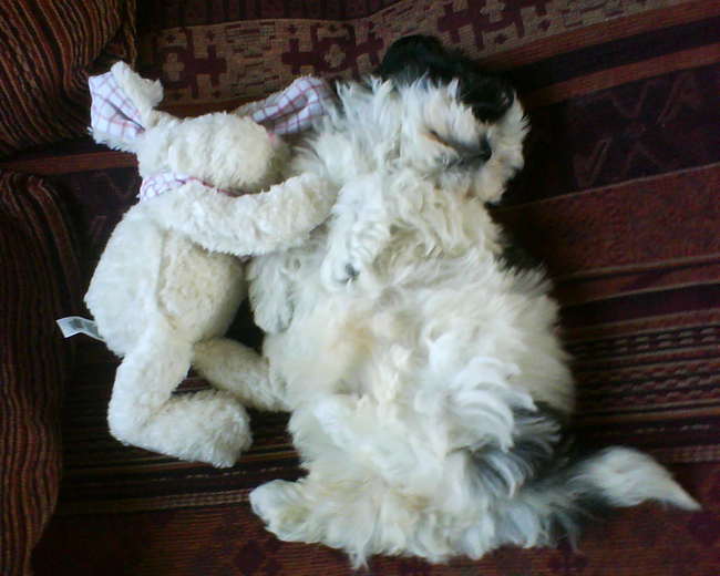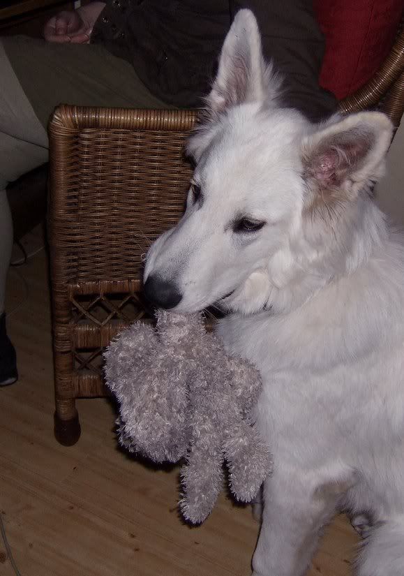 mijn vrouwtje is trouwens ook gek op knuffels dus kijk je uit