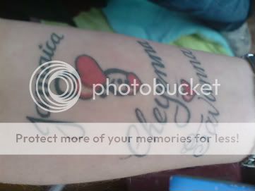 haha jah is echt een ramp me pa heeft er nu maar 3 gezet me been( waar ik ook ben hij altijd aan mijn been gekluisterd is haha ) de naam van me zoontje die vind ik het mooiste omdat de naam van me zoon gezet is door me pa en de letter w vanme vriend derest is door andere gezet maar ben van plan om er wel een paar weg te halen die door andere is gezet anders is het zoveel hahaha
