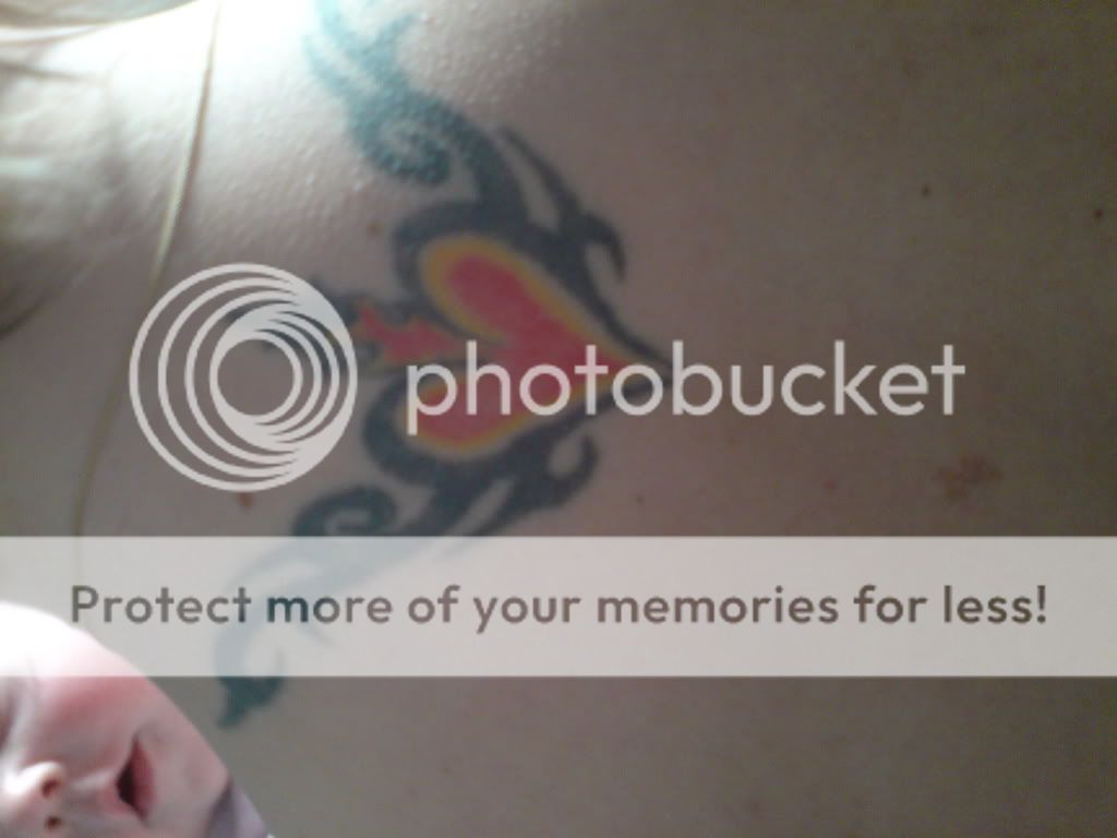 Ik heb 2 tattoo's. 1 op mijn buik naast mijn navel, dit is een chinees teken (liefde en genegenheid). Op mijn rechterschouderblad heb ik een tribal (deze heb ik het langst). Heeft geen officiële betekenis maar voor mij wel.