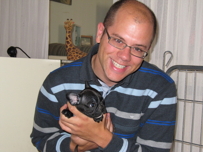 Hij is een Franse Bulldog rue en dan net 8 weken oud. We noemen hem "Bolle."