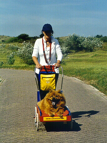 Het overkwam mij al jaren geleden en ik was ten einde raad. Hoe moestie mee met de roedel? Een vriend van mij maakte een kar op maat waar hij op kon liggen als hij moe werd en zo kon jij toch mee wandelen. Ik heb het ding nog steeds en al vele malen gebruikt. Er is vaak een bod op gedaan door andere grote hondenbezitters en ik heb verder nog nooit iemand gezien met een dergelijk geval. Mijn vraag...hoe lossen anderen dit op en is dit misschien een gat in de markt?