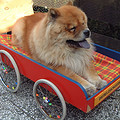 Ik heb vorig jaar een petcab aangeschaft toen mijn Flos bijna 17 was en wij hem toch nog graag een keer mee wilde nemen voor een weekje naar zee. Ik heb een grote variant gekocht die belast kan worden tot +/- 50 kg. Daar kan dus een behoorlijke hond in....Het is echt een uitkomst voor honden die moeilijker ter poot worden. Deze kar kan dan ook nog achter de fiets gehangen worden. Dus zo kan de hond toch lekker mee....Je hebt deze kar ook van doggyride en zelfs nog wel een formaat groter....Hier nog een foto waar de kar die ik heb op te zien is....