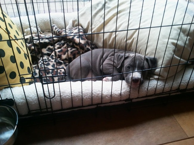 Wij hebben sinds eerdergisteren een Amerikaanse Stafford van 7 weken jong.