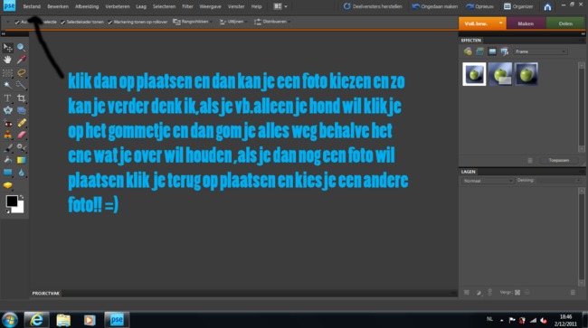 je kunt ook als je een collage maakt een foto over de laag zetten en als je het dan weg gumt dan komt de vorige laag te voorschijn.