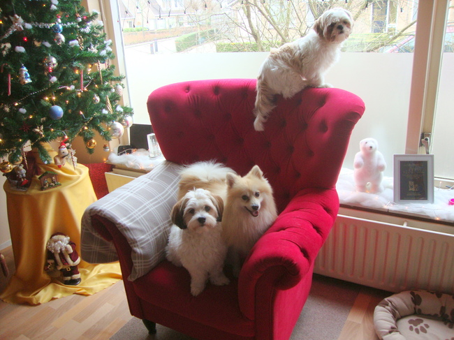 Nu ook met de kerst, mijn ouders waren er met hun hondje, ik had twee logeerhonden, maar Cloudy, die maakt het niet uit, als hij er maar bij is en zijn knuffel en aandacht heeft... Het was genieten om hem zo blij te zien, of hij nu alleen met mij is, met meer honden of met bezoek, hij vind het allemaal goed! Elke dag zie ik hem weer een beetje meer opbloeien, in het begin sliep hij in de mand, later in de stoel, nu slaapt hij bij mij op de bank naast Sammy en Deva.. Hij gaat meer en meer merken dat hij echt een plekje heeft in de roedel en dat maakt me heel blij..