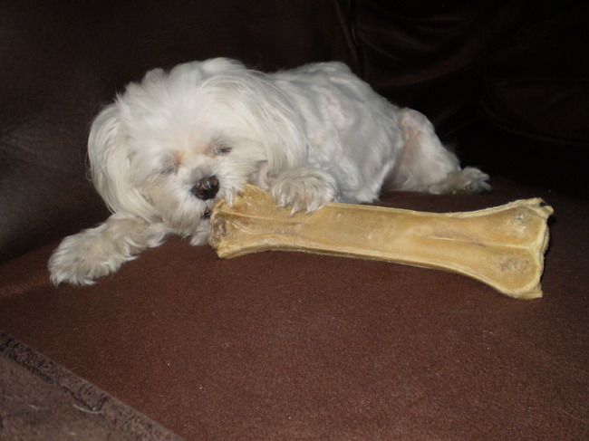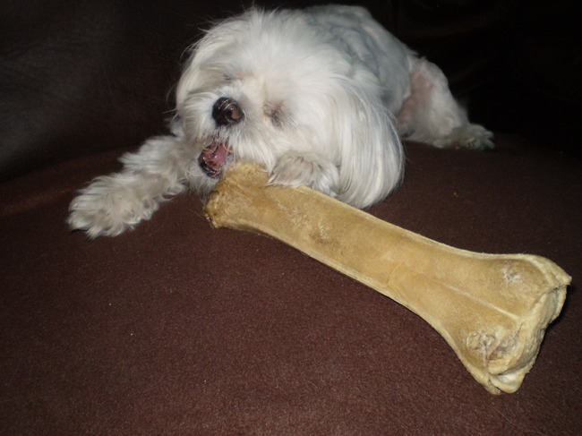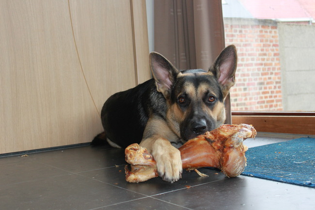 Wij geven Arco ook vaak een bot. Vorige keer kreeg hij ook een heel groot. Hierbij een fotootje!