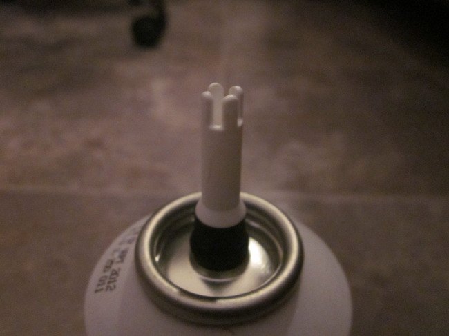 Je moet dat witte steeltje/tuitje inderdaad gewoon schuin drukken..alsof je hem eraf wil breken, zegmaar