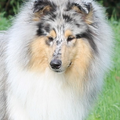 Blue Merle: De Blue Merle is een lastige kleur om goed te fokken. Veelal worden ze als grijs gezien of met veel zwarte vlekken, wat wel is toegestaan. De Blue Merle heeft echter normaalgesproken een zilverkleurige vacht, of is blauwschimmel van kleur met zwarte puntjes of vlekjes, dit met bruine- of tanaftekeningen in expressie en pootjes en natuurlijk met de witte kraag die geheel of half kan zijn en witte pootjes. Roestkleurige vlekken zijn niet toegestaan.