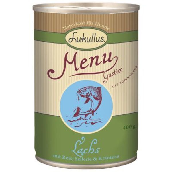 Lukullus Menu Gustico Sensitive is hoogwaardige natuurvoeding voor honden, dat uit natuurlijke en kwalitatief hoogwaardige ingrediƫnten van levensmiddelkwaliteit wordt geproduceerd. Lukullus volgt de regels van de natuur en voedt uw hond op juiste wijze. Door een behoedzame toebereiding van het voer wordt uw hond op natuurlijke wijze met alle belangrijke voedingsstoffen voor een gezond en evenwichtig hondenleven verzorgd. ... lees meer